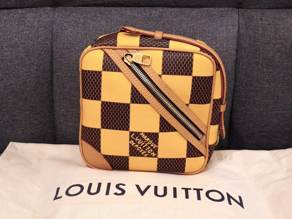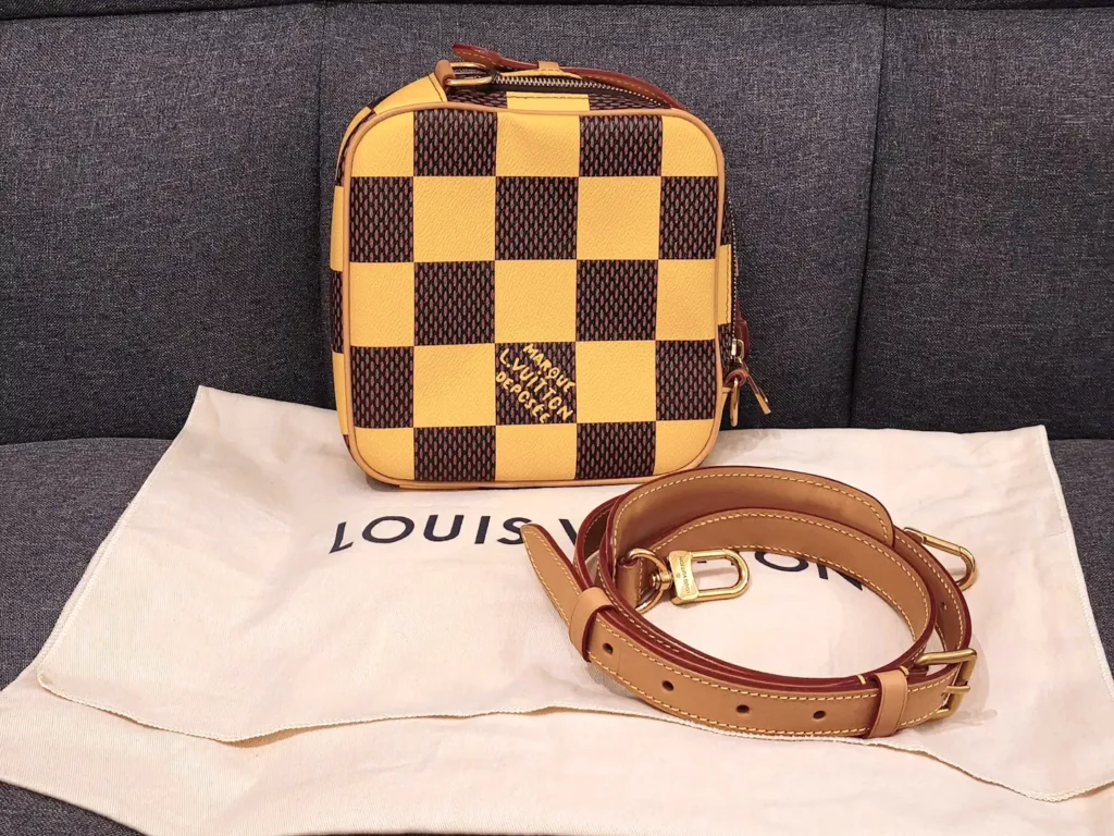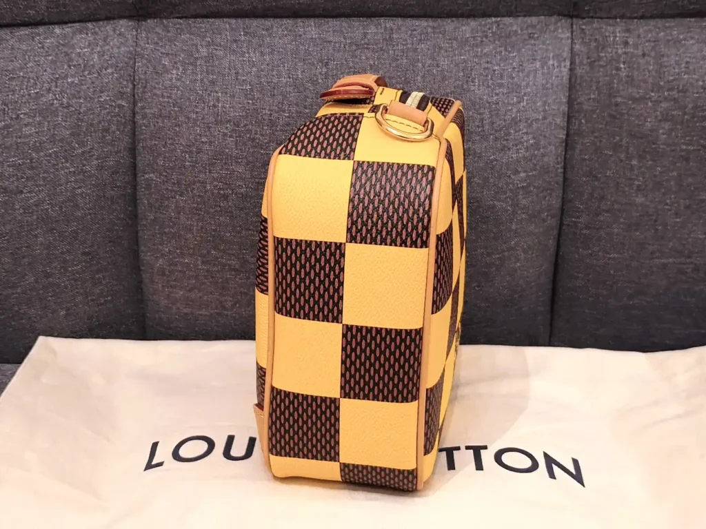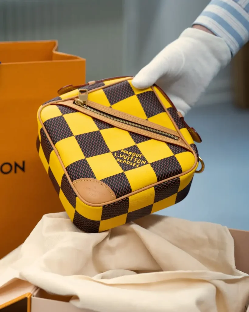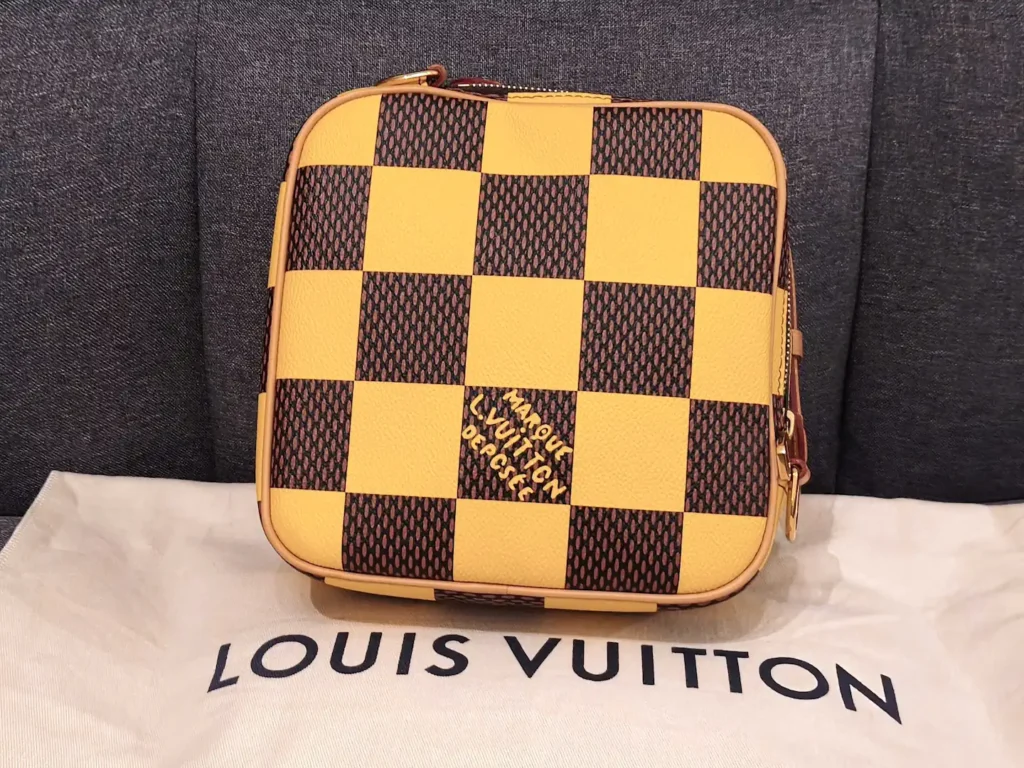 Bei der Tasche handelt es sich um das Modell „Chess Messenger“ aus dem Jahr 2024. Sie präsentiert sich im neuen Damier Pop Canvas und greift dabei die unverkennbaren Design-Codes des Hauses Louis Vuitton auf. Charakteristische Details wie der Besatz aus Naturleder, verstärkte Ecken sowie ein Tragegriff an der Oberseite unterstreichen den hochwertigen Look. Ergänzt wird das Design durch einen abnehmbaren Schulterriemen, der sich individuell verstellen lässt und ein diagonales Tragen am Körper ermöglicht.