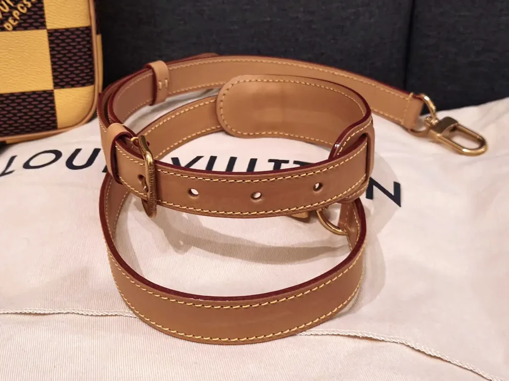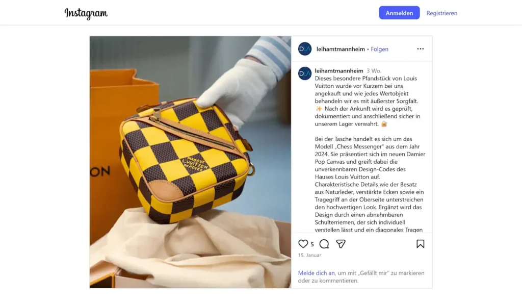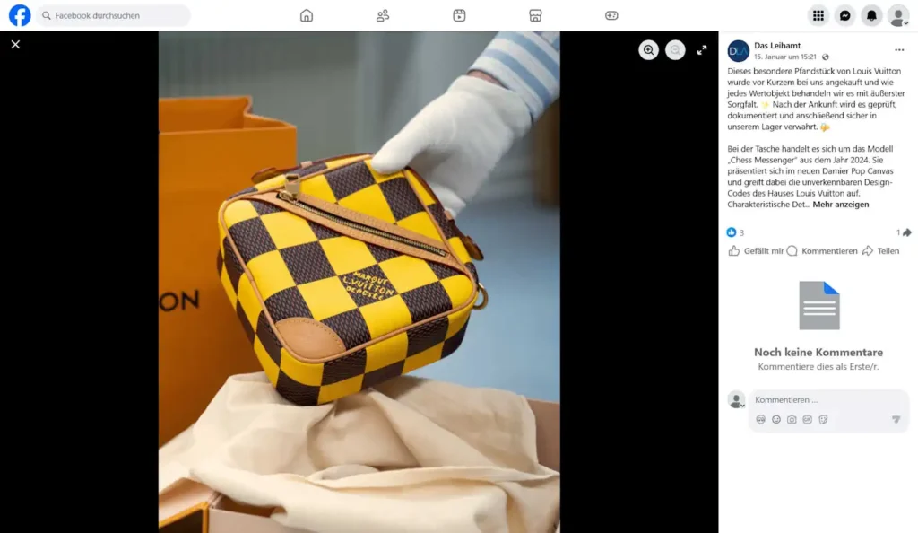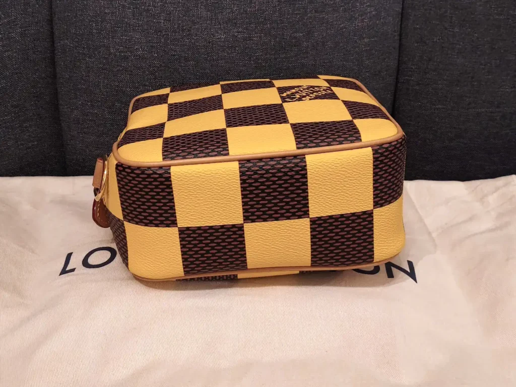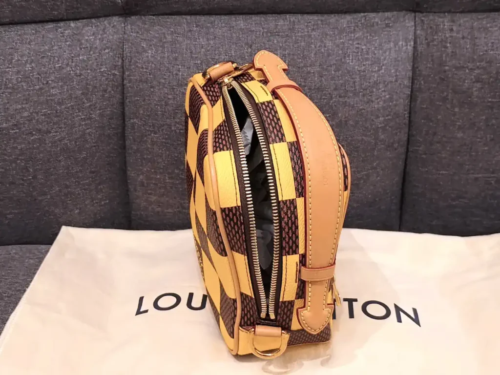 Bei der Tasche handelt es sich um das Modell „Chess Messenger“ aus dem Jahr 2024. Sie präsentiert sich im neuen Damier Pop Canvas und greift dabei die unverkennbaren Design-Codes des Hauses Louis Vuitton auf. Charakteristische Details wie der Besatz aus Naturleder, verstärkte Ecken sowie ein Tragegriff an der Oberseite unterstreichen den hochwertigen Look. Ergänzt wird das Design durch einen abnehmbaren Schulterriemen, der sich individuell verstellen lässt und ein diagonales Tragen am Körper ermöglicht.